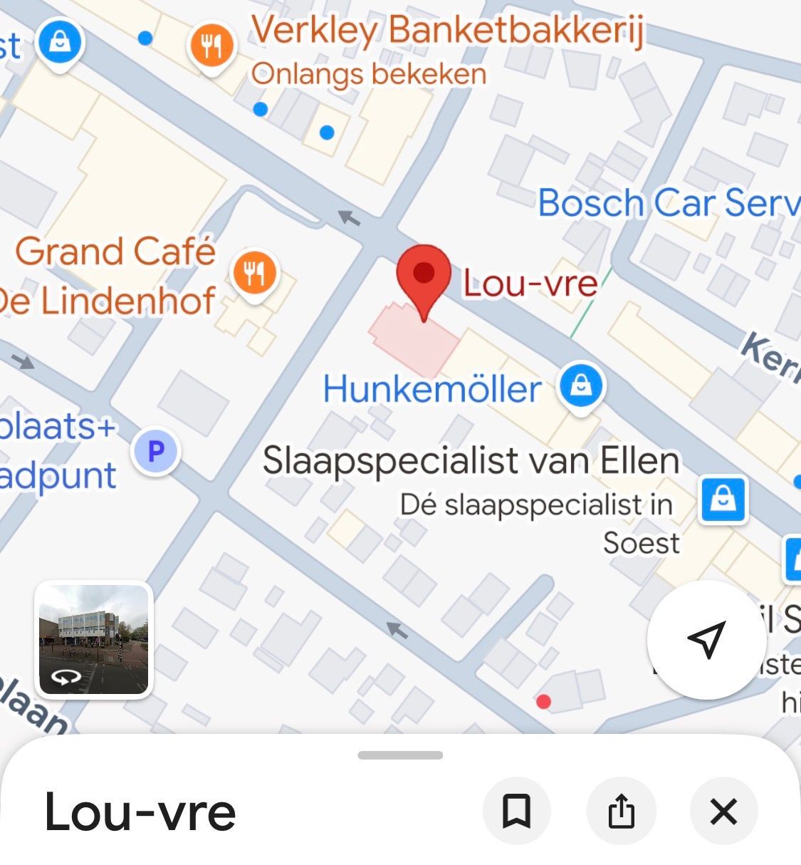 ’t Louvre is een sfeervol en creatief winkel- en ondernemerspand in het centrum van Soest. Het ligt aan de Van Weedestraat 97, naast Grand Café De Lindenhof (Grand Café), met de weg ertussen. Binnen vind je verschillende kleine shops en lokale ondernemers in een rustige, vriendelijke sfeer. Je kunt er even rondkijken, gezellig wat eten of drinken of rustig zitten terwijl je wacht.