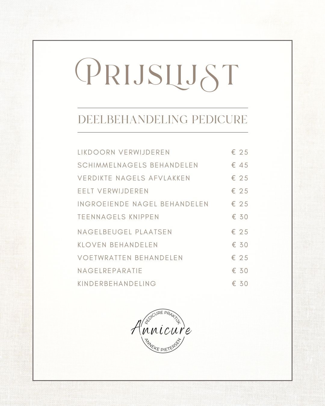 Als medisch pedicure heb ik aanvullende scholing gevolgd en extra examens afgelegd, waardoor ik ook risicovoeten mag behandelen die in aanmerking komen voor vergoeding. Deze extra opleiding geeft mij meer specialistische kennis, terwijl de basis van het pedicurevak voor alle pedicures hetzelfde is. Je bent dus welkom!